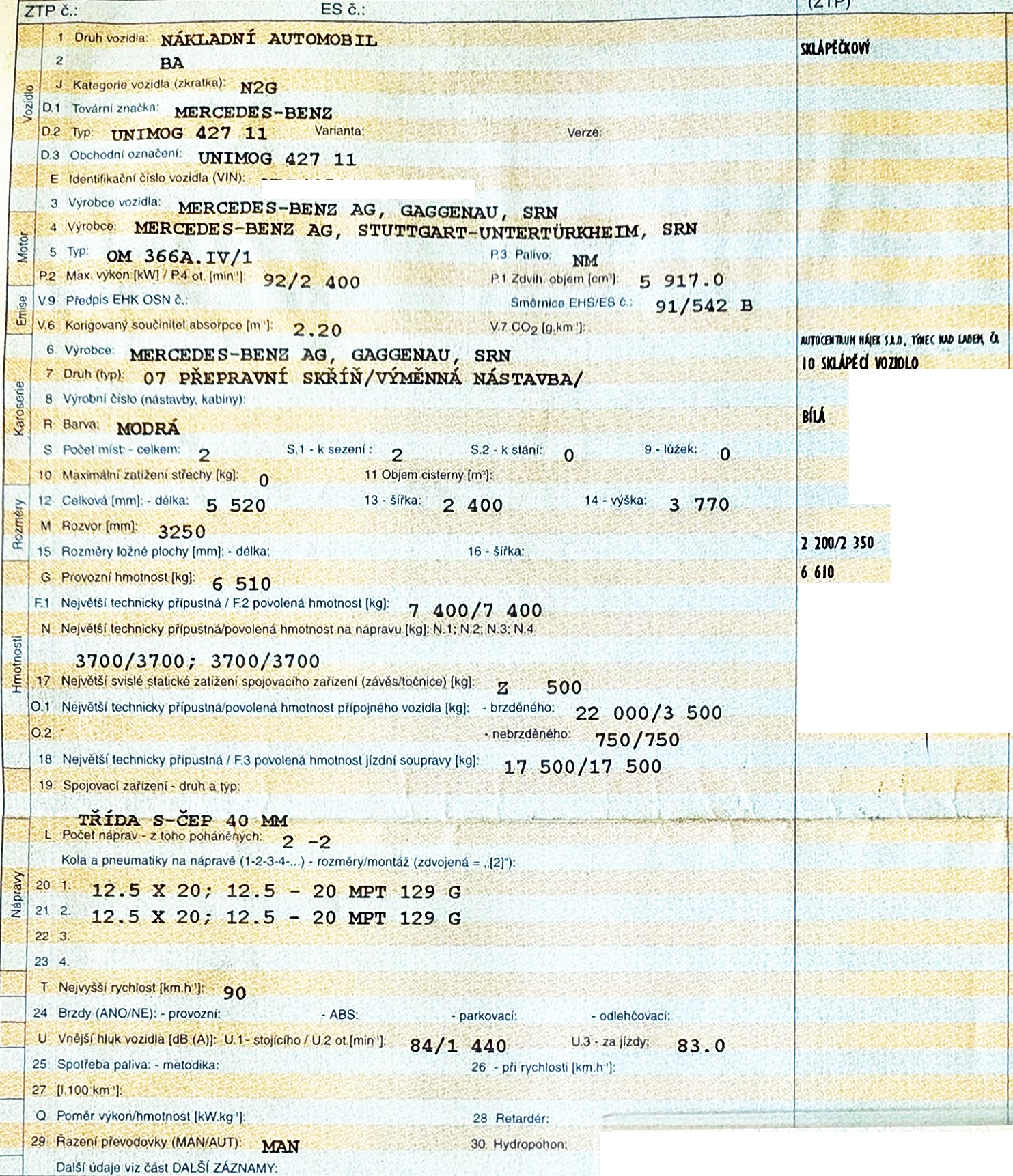 | Počet náprav: | 2 | Ciężar całkowity: | 7 400 Kg |